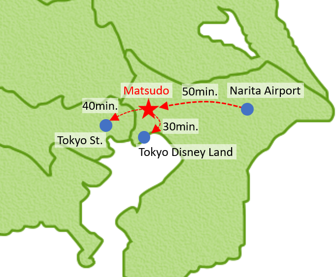 about 50 minutes to Matsudo